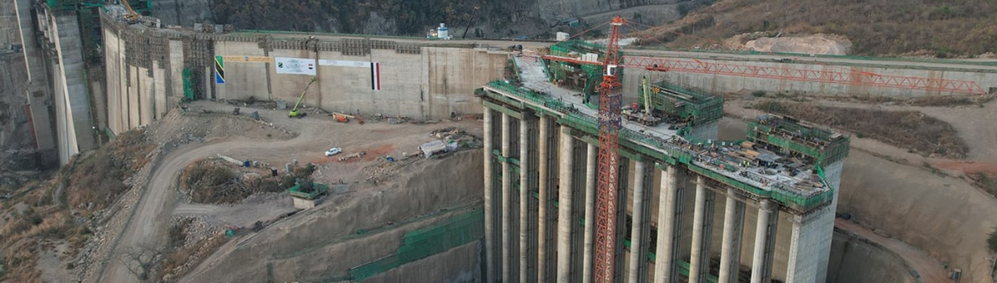 EPC scope of works that includes the main dam, saddle dam, coffer dams, diversion tunnels, stop logs & gates, trash racks, admin building, workshop building, colony, intake structure, power house, cranes, spillways, roads, Rufiji bridge, control building, switchyard, surge tanks, hydro turbines with auxiliaries, generators with auxiliaries, main control valves, power tunnels, transmission lines and firefighting system.